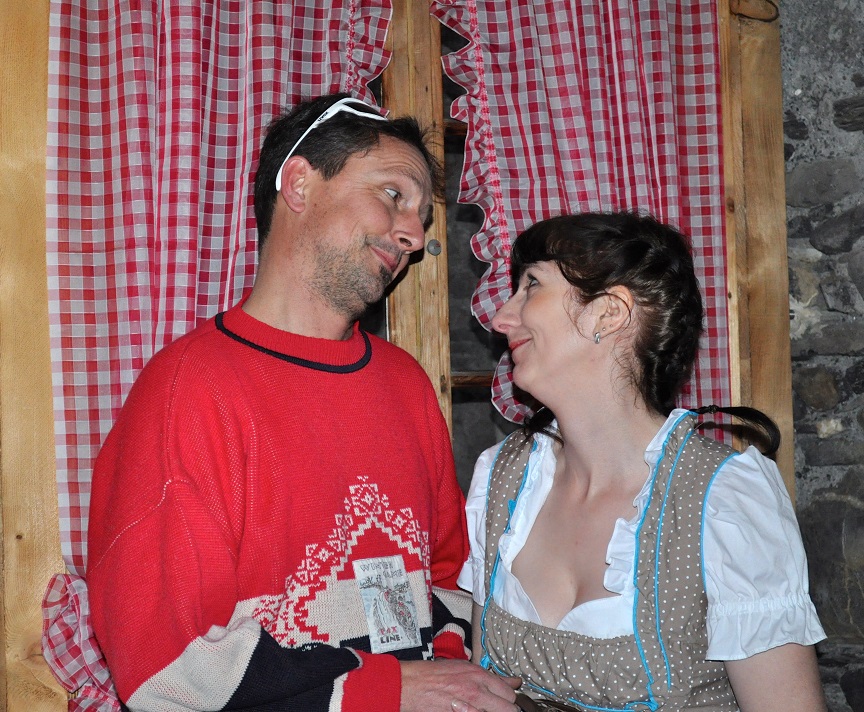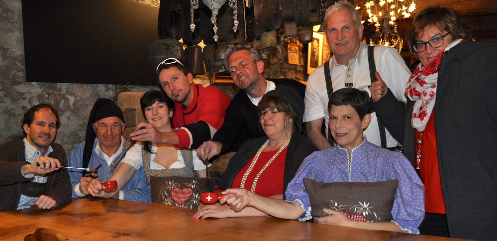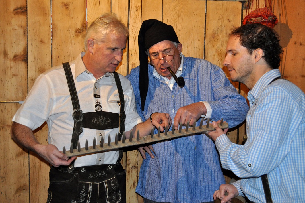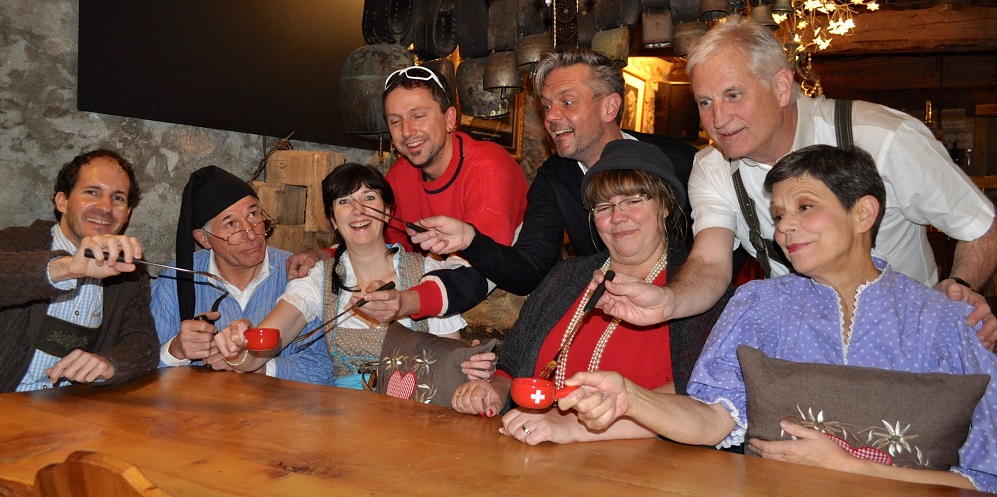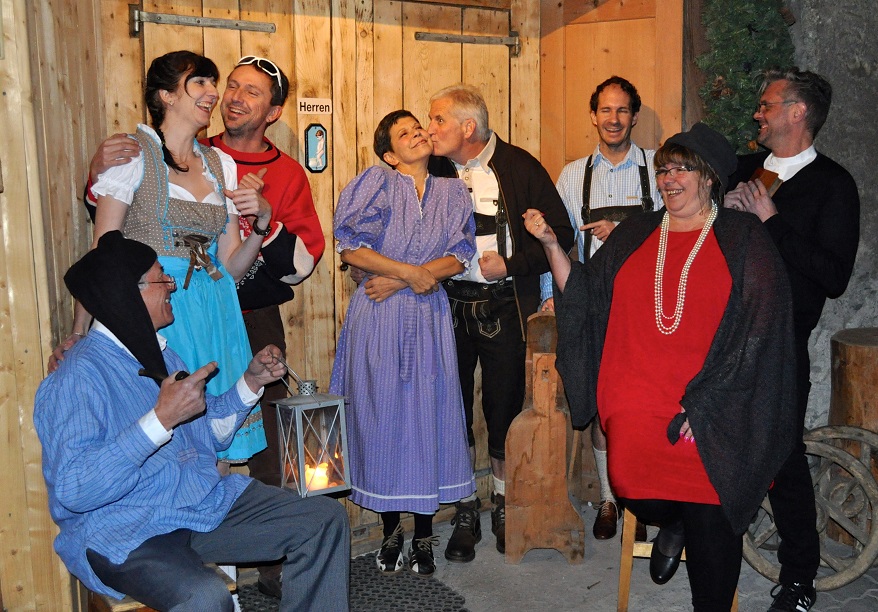 2017 – Holzers Peepshow Fotos zur Aufführung im Jahr 2017 Herr Pfarrer und Frau Speck Familie Holzer mit Neni Skilehrer Martin mit Anna Holzer Neni Holzer Familie Holzer 3 Generationen Hans Holzer Annina Giovanoli (Regie)