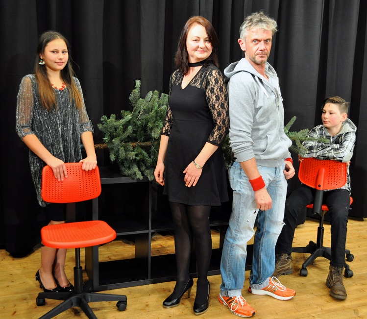 2018 – Merry Christmas Wedding Cake Fotos zur Aufführung im Jahr 2018 Roland Weideli Marcus Schumann Karin Brunold Peter Hunziker Manuel Salvator Tina Frommenwiler und Nico Hartmann Maja Ittlinger Gabi Schumacher Michi Broger Trudy Weidele Annina Giovanoli (Regie)